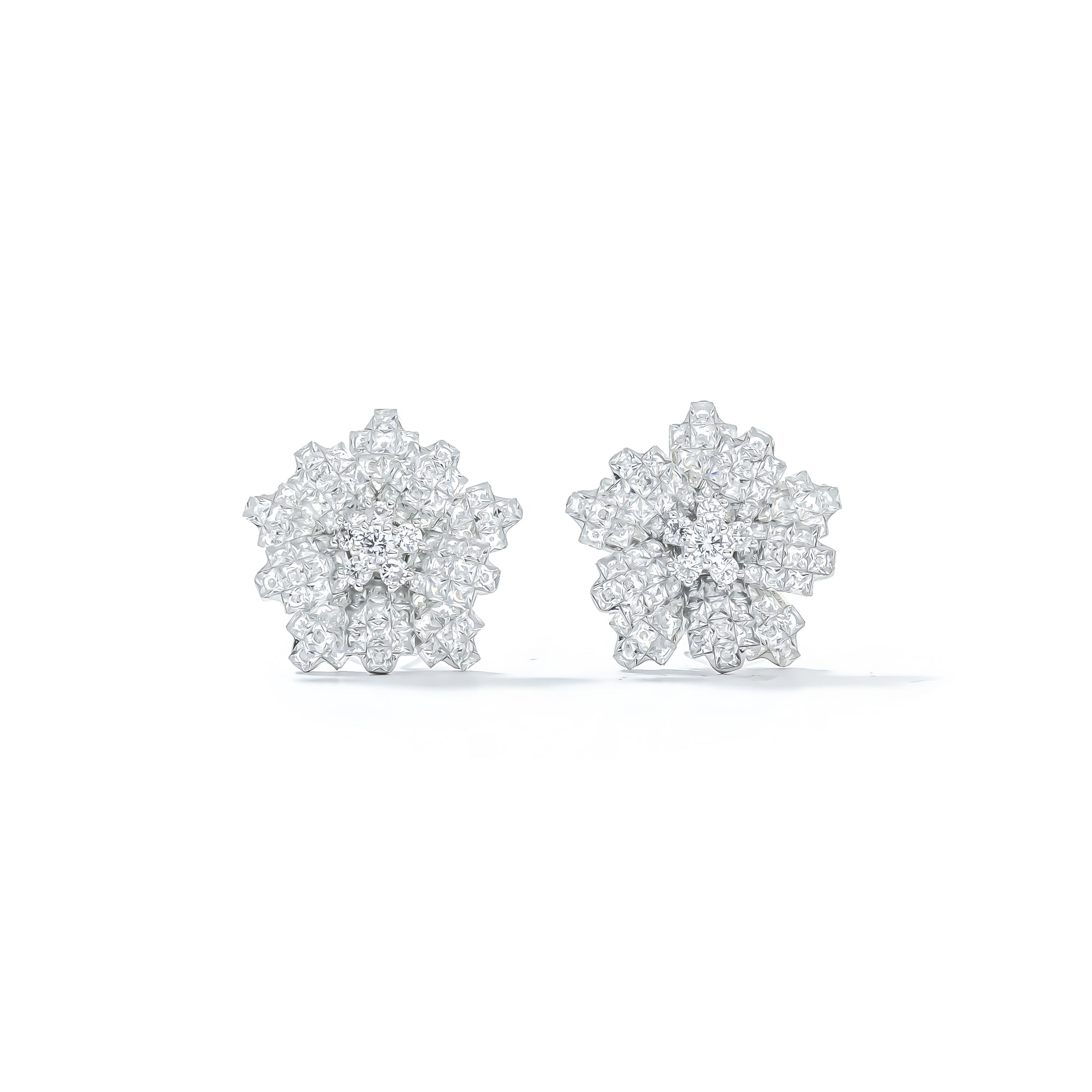 • Luxury rhodium-plated statement studs featuring flower-shaped Swarovski crystals with small round and princess-cut accents