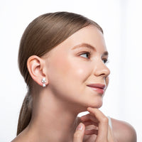 • 92.5 silver studs with drop danglers, featuring round, leaf, and teardrop Swarovski crystals
