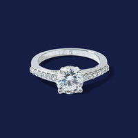 • Timeless 92.5 silver ring featuring round-cut Swarovski solitaires with tiny accent diamonds along the band