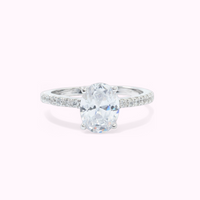 • Timeless 92.5 silver engagement ring featuring an oval-cut Swarovski center stone and tiny round diamond accents on the band