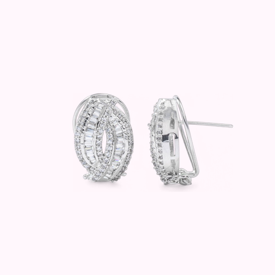 Experience elegance with our exquisite silver tone earrings, intricately designed and adorned with dazzling cubic zirconia crystals. These captivating earrings are the perfect accessory to elevate any special occasion, offering unmatched sparkle and sophistication. Crafted with attention to detail, the timeless design ensures they can be cherished for years to come. Available in a refined silver hue, making them the ideal piece to complement any outfit.