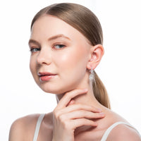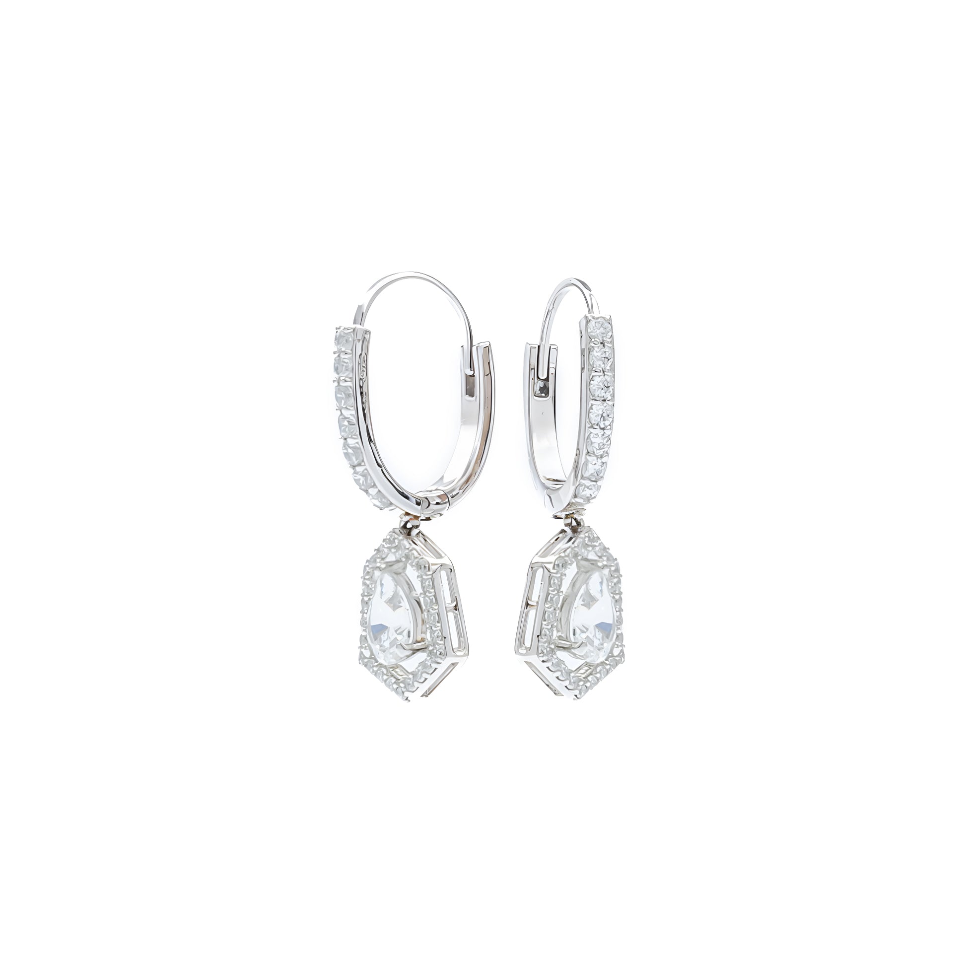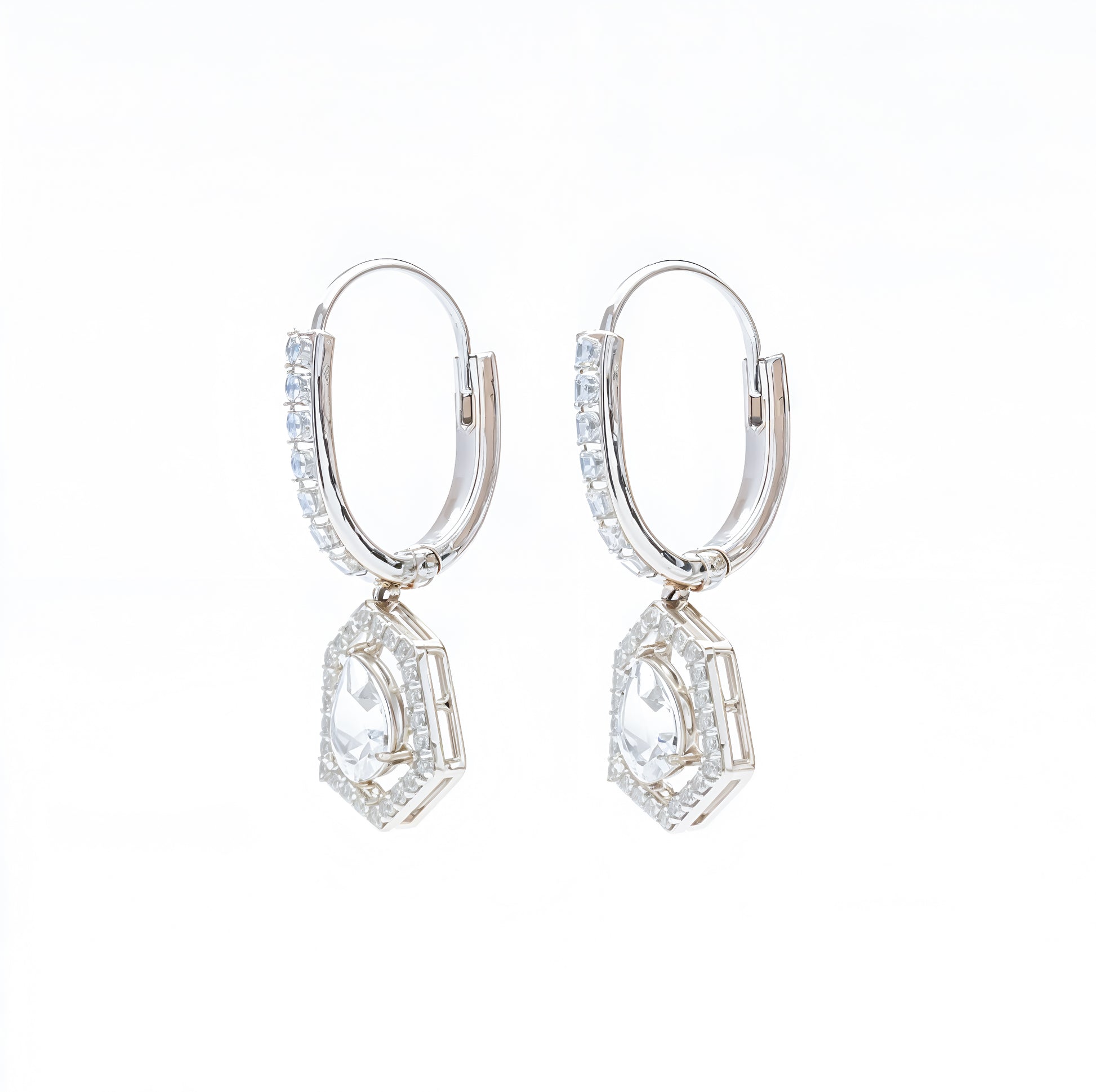 • 92.5 silver hoops with hexagon halo Swarovski crystals and dangling teardrop
