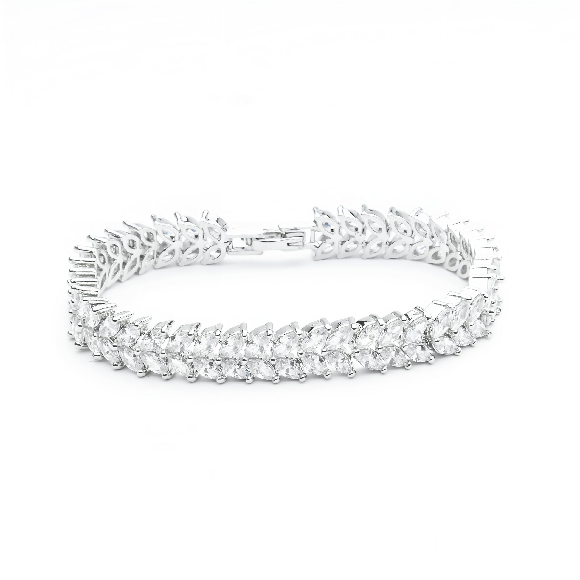 • Luxurious rhodium-plated metal tennis bracelet featuring leaf-shaped diamond-look Zirconias