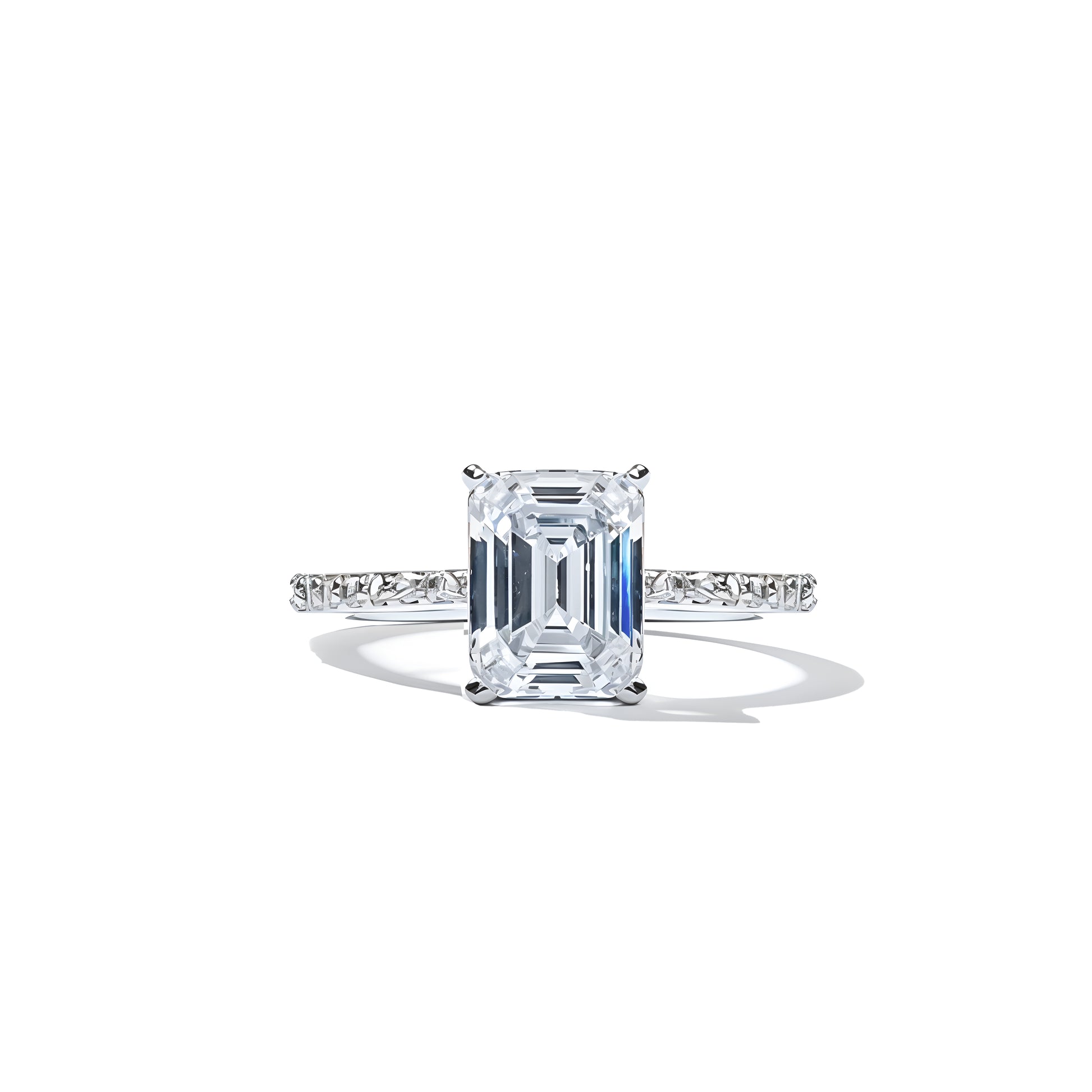• Elegant 92.5 silver ring featuring a dazzling emerald-cut Swarovski solitaire with delicate crystals along the band